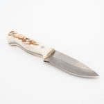 Bu bıçağın sapında kullanılan doğal geyik boynuzu, hem dayanıklılığı hem de benzersiz dokusuyla öne çıkar.